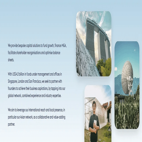 65 Equity Partners (65EP) is a global investment firm dedicated to supporting family-owned and entrepreneur-led mid-market companies across Asia, Europe, and the United States. Backed by Temasek, 65EP offers flexible, bespoke capital solutions for growth, acquisitions, shareholder transitions, and balance sheet optimisation. The firm manages over US $4.2 billion in assets and operates offices in Singapore, London, and San Francisco.